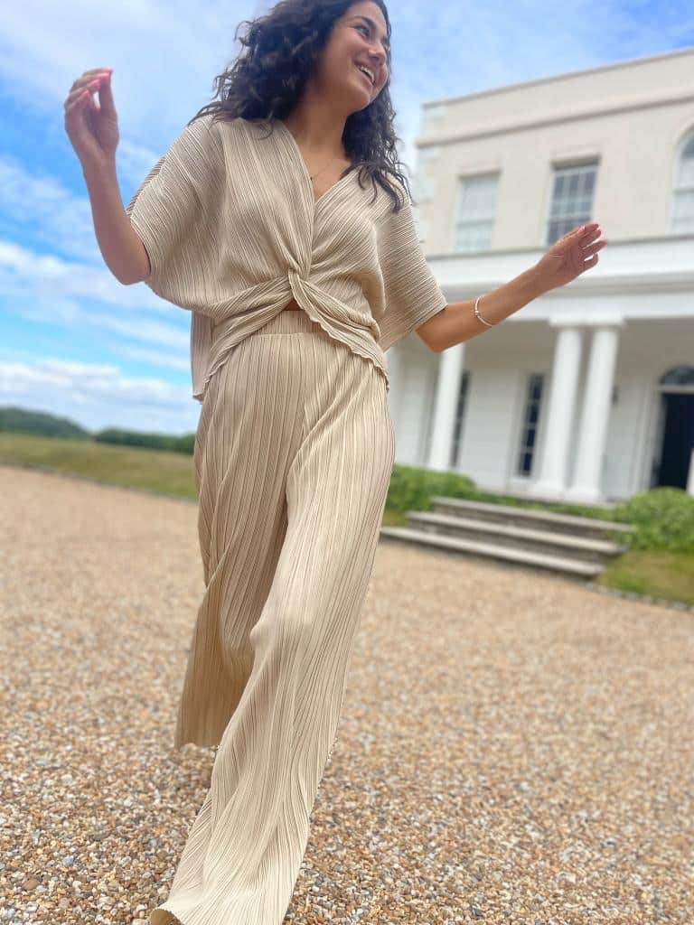 • Beige Plisse Trousers