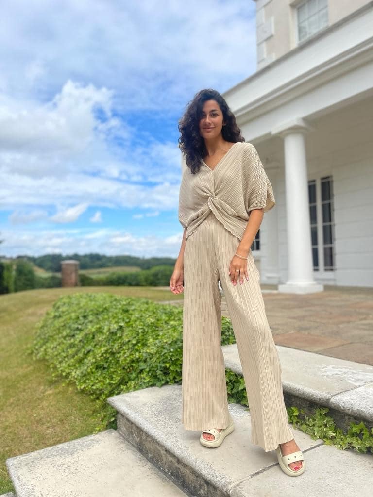Beige Plisse Trousers
