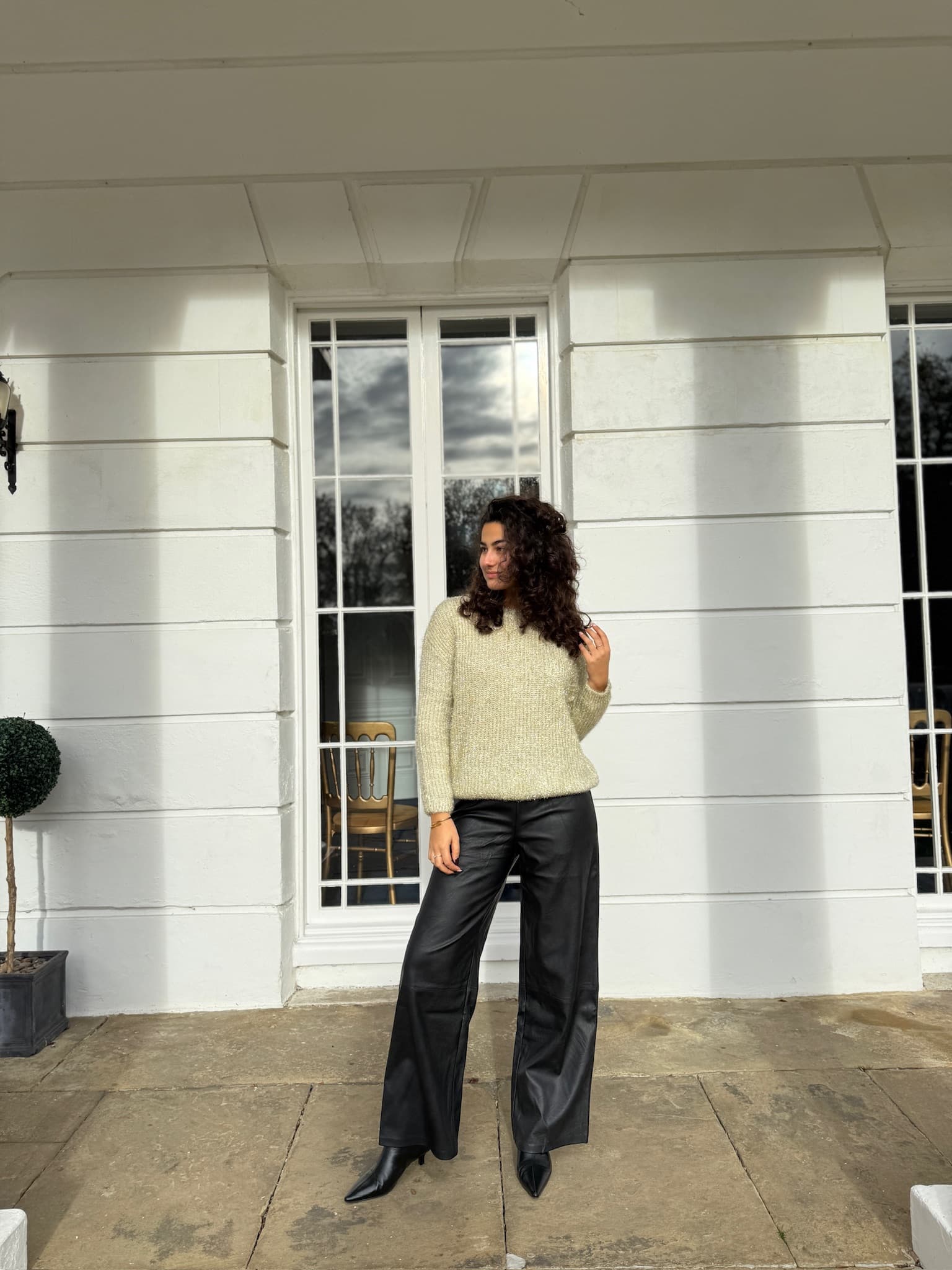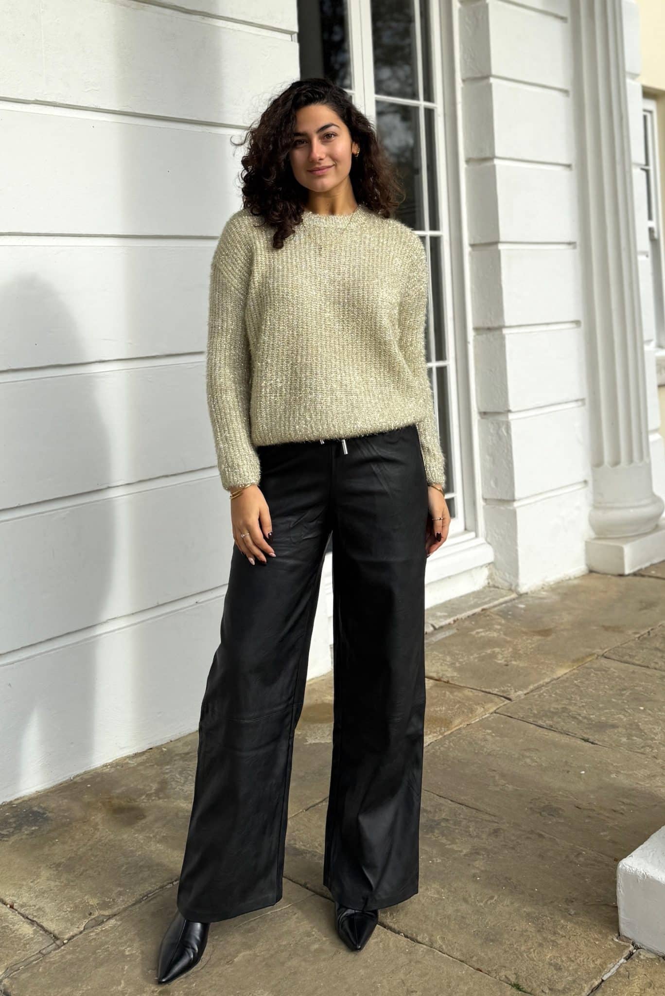 Just the comfiest faux leather trousers smart but casual.