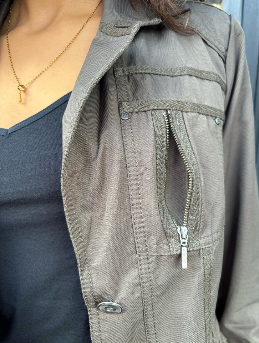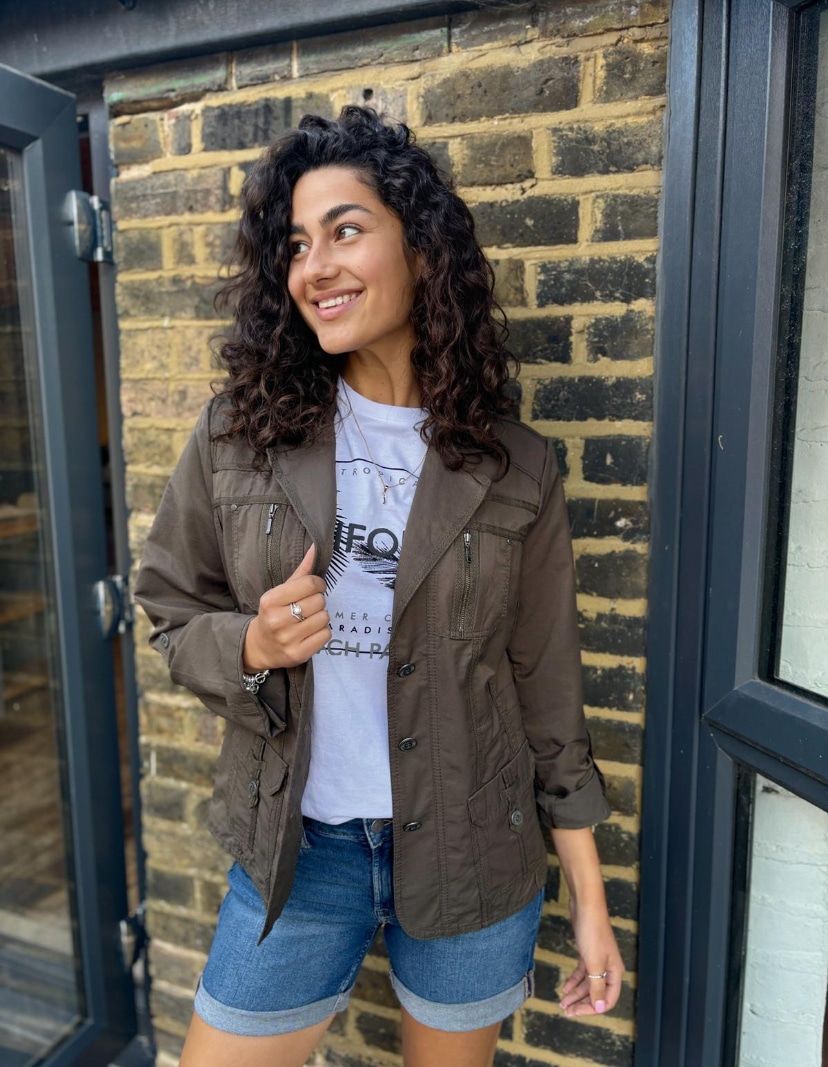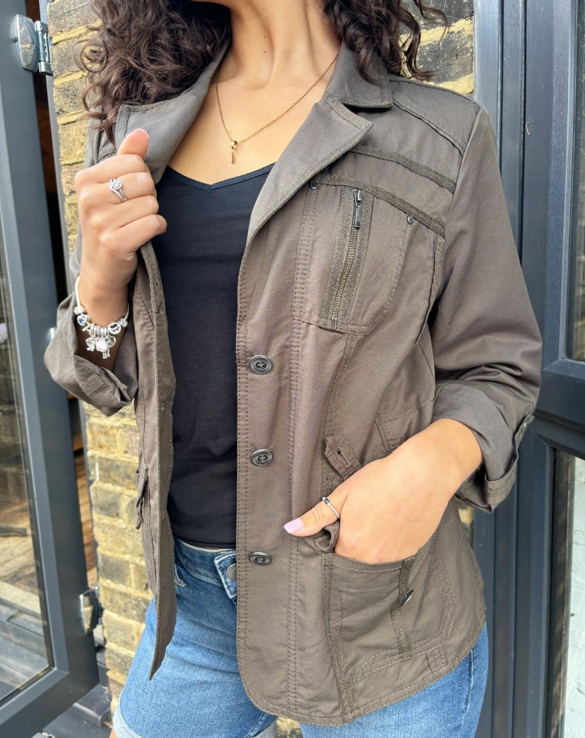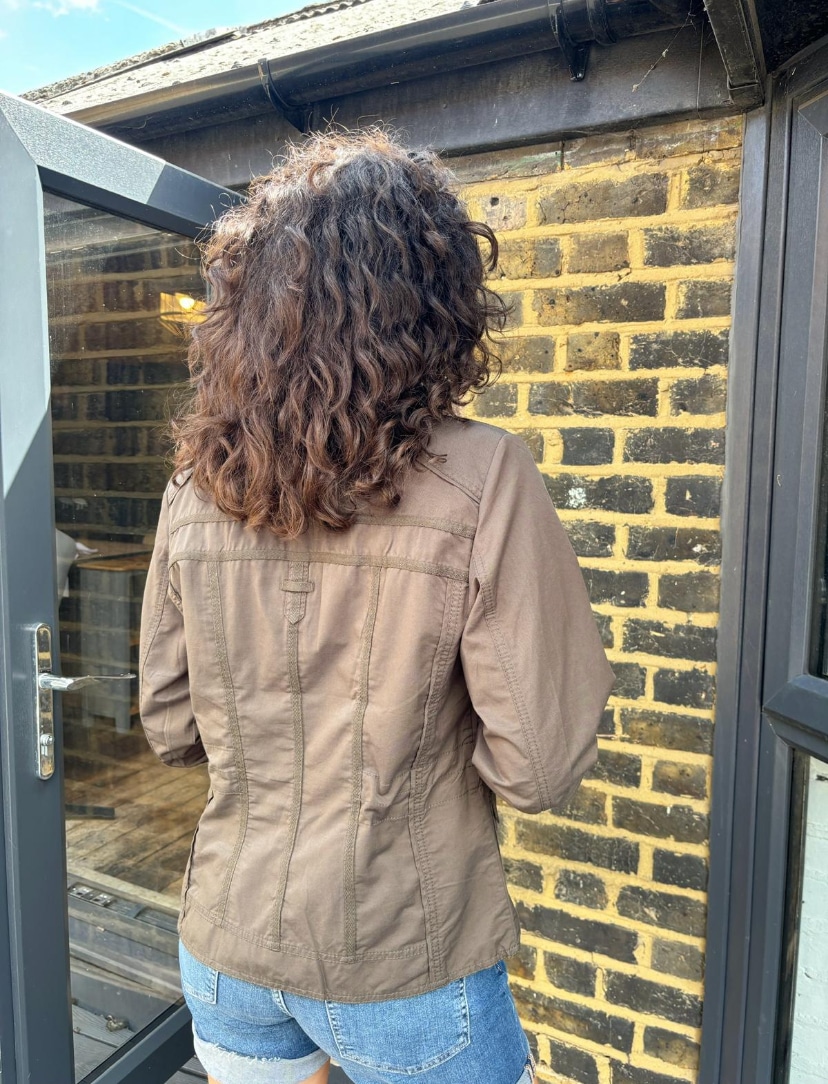 Across Chest: 20″. Shoulder to Hem 25″. Neck To Cuff 29″. Inside Sleeve 18.5″. Taken From A Size 10.