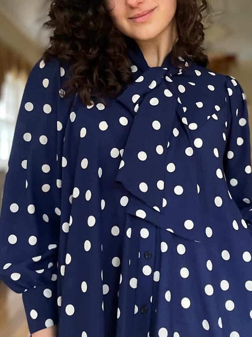 Navy Cream Polka Dot Romantic Floaty Tie Blouse