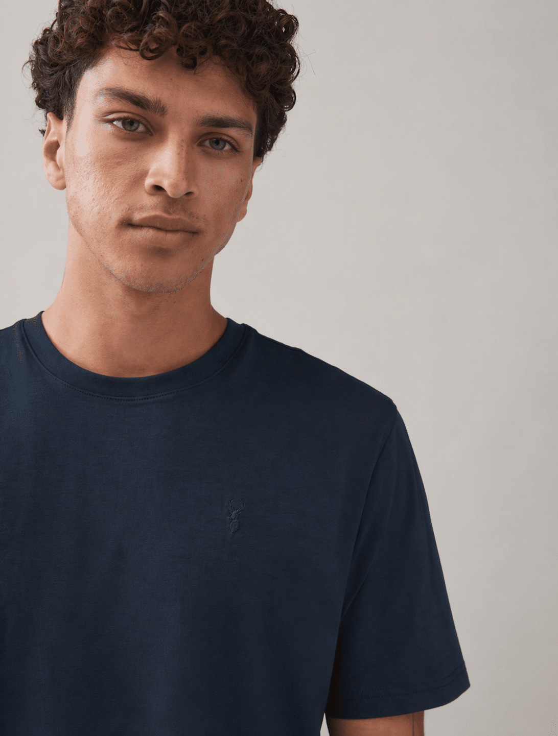 • Design: Minimal stag logo embroidered on chest