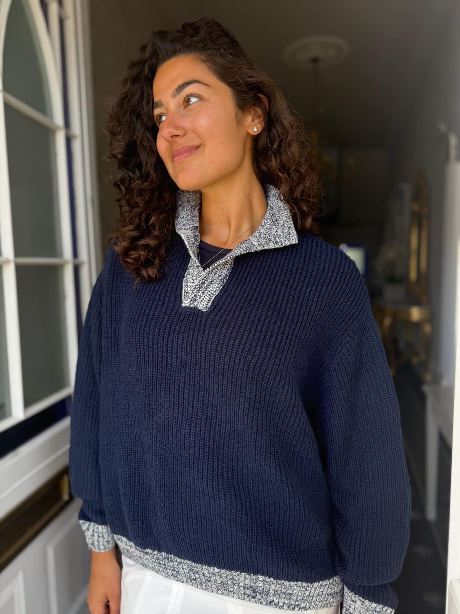 • Navy With Grey Marl Collar Jumper