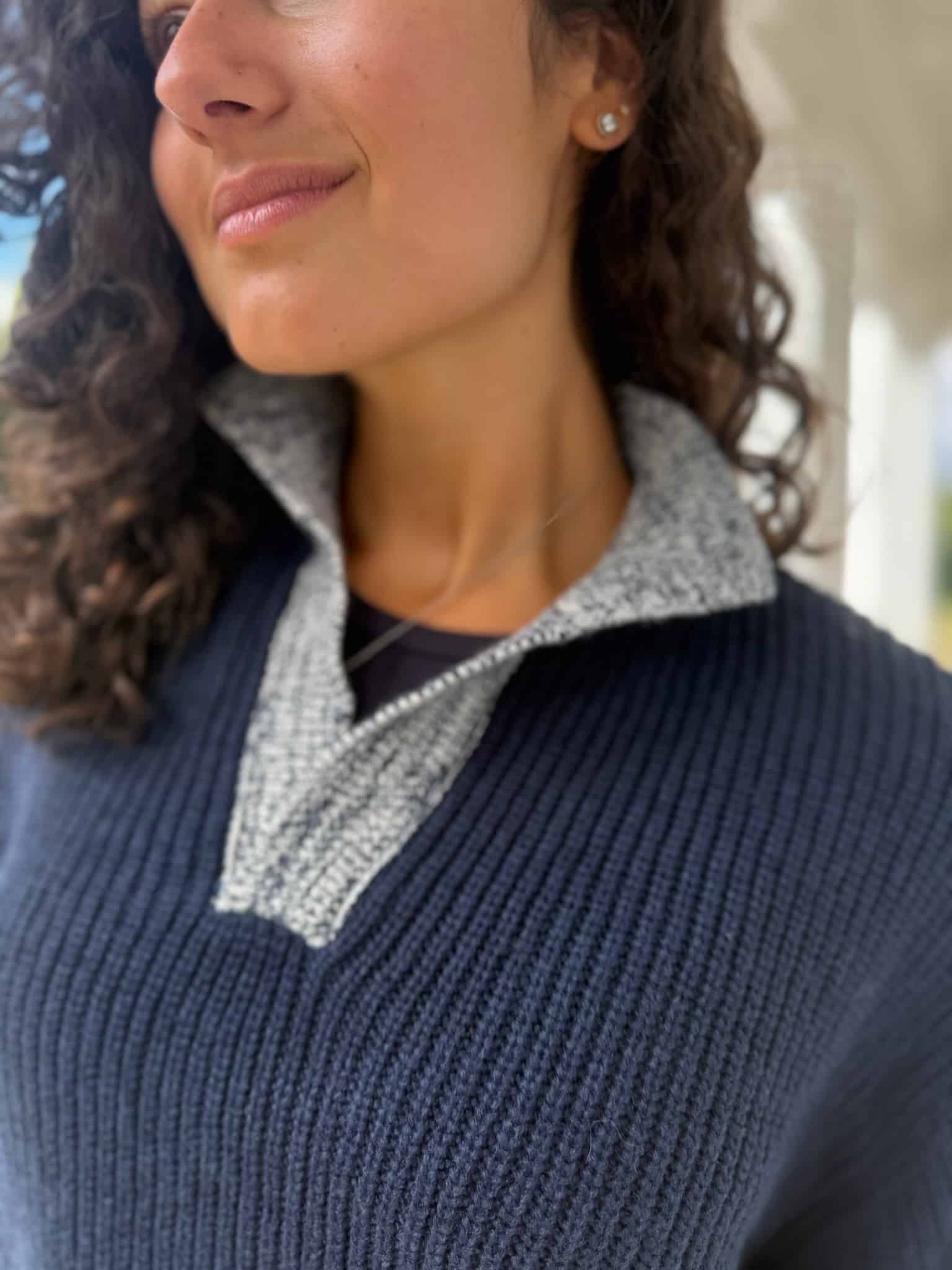 Navy With Grey Marl Collar Jumper