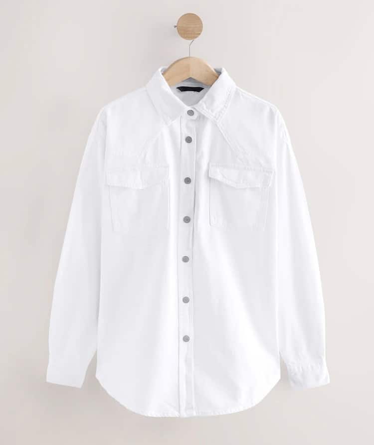 White Oversized Two Pocket Denim Shirt
